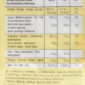 Kann Spuren von anderen Schalenfrüchten, Erdnüssen, Sesamsamen, Soja enthalten.