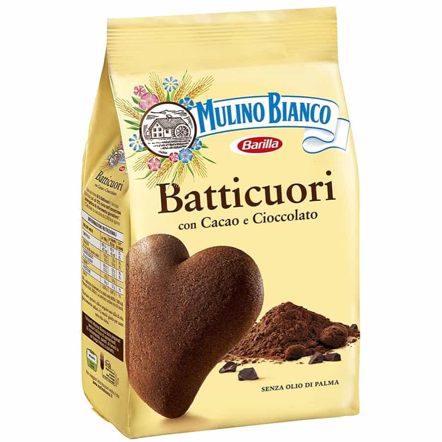 Mulino Bianco ist einer der beliebtesten Kekshersteller in Italien. Mit seinen leckeren Geschmackskombinationen bietet er für jeden Geschmack das richtige. Bei den Mulino Bianco Batticuori Keksen handelt es sich um eine schöne Kekskombination, aus frischer Milch und dunklen Schokolade, in Herzform. Perfekt zum täglichen Kaffee oder als Kleinigkeit zwischendurch.