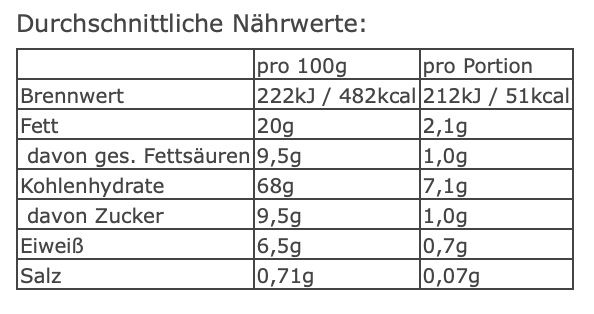 Kann Spuren von Schalenfrüchten, Erdnüssen und Soja enthalten.