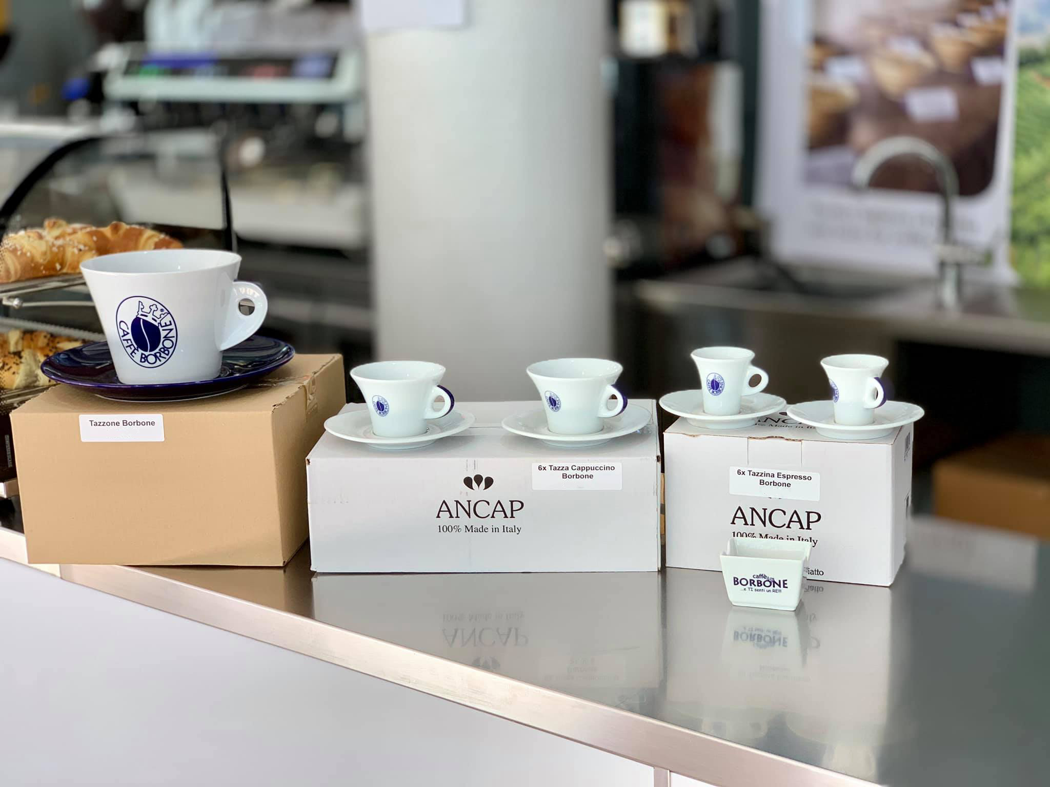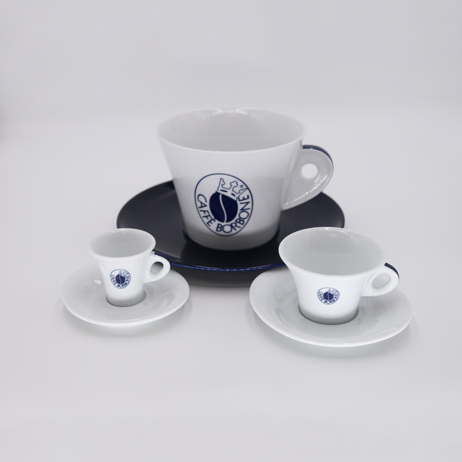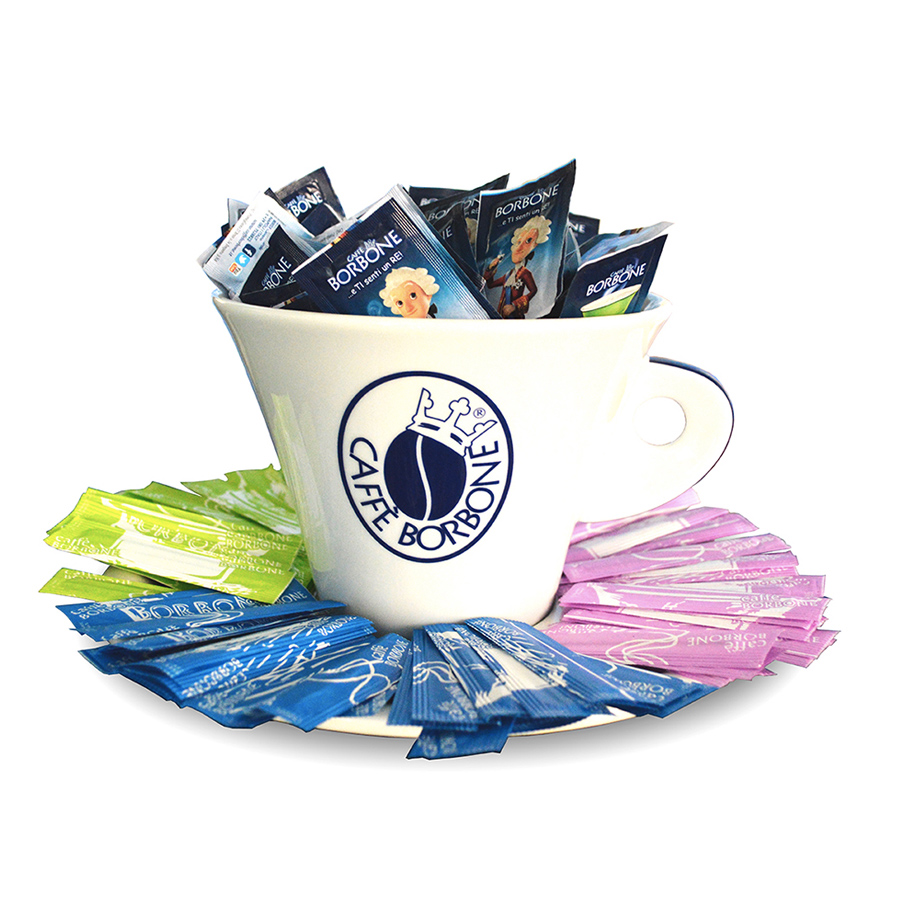 Die übergroße Tasse aus Keramik von Caffè Borbone eignet sich hervorragend zur Aufbewahrung von Zuckerbeuteln auf eine elegante Art und Weise sowohl an der Bar als auch zu Hause.
