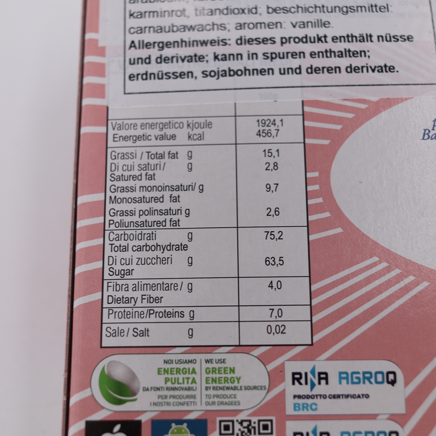 Allergeninformation: Das Produkt enthält Milch, Nüsse, Soja und Derivate. Es kann Spuren von Erdnüssen und Derivaten enthalten.