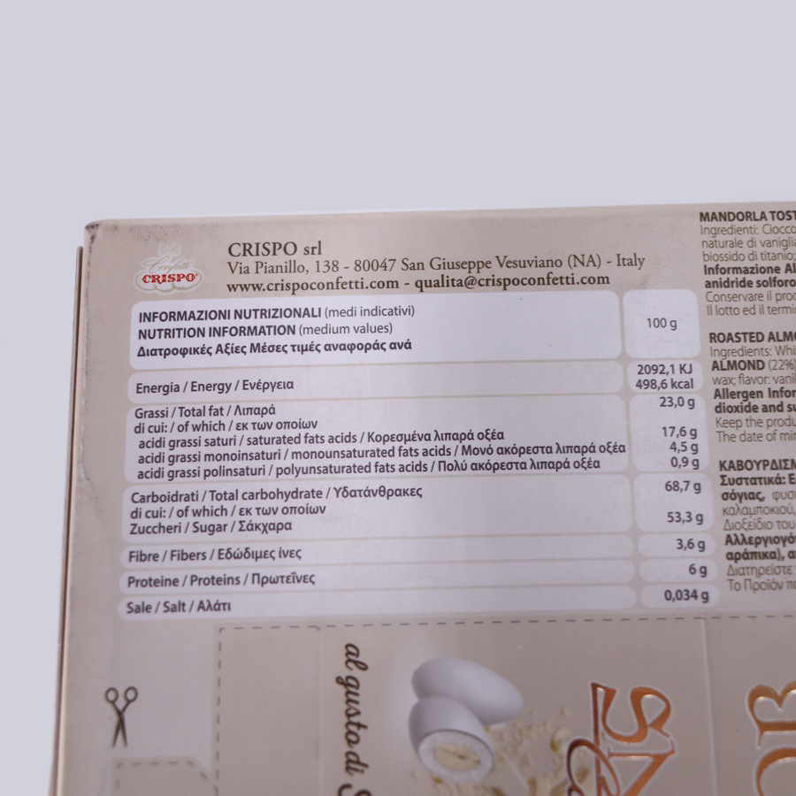 Das 1890 gegründete Unternehmen Confetti Crispo hat sich mit Professionalität, Enthusiasmus, Können und Produktionsqualität in Italien und weltweit als führendes Unternehmen in verschiedenen Bereichen der Süßwaren- und Süßwarenbranche etabliert. Das Geschäft war schon immer von hervorragenden Zutaten geprägt, die sorgfältig verarbeitet werden. Die Auswahl der Zutaten, die Liebe zum Detail und innovative Präsentationen waren und sind die Grundelemente für den Erfolg des Unternehmens in Kampanien. Die Geschäftsphilosophie von Confetti Crispo verbindet die Tradition von über 100 Jahren Produktionsgeschichte mit Innovation bei der Suche nach neuen Kombinationen von Aromen und Farben, um etwas zu schaffen, das ausgehend von einfachen Zutaten das ursprüngliche Konzept der gezuckerten Mandel auf den Kopf stellt . Nach vielen Jahren der Tätigkeit werden noch viele Projekte gemäß der Philosophie des Unternehmens umgesetzt, jedoch mit einer bestimmten Mission: der Produktion und Einführung neuer und attraktiver Produktreihen mit der Schaffung von etwas, das immer absolut originell ist. Duft nach Blumen, Fruchtcremes, Schokolade und leicht knusprigem Zucker sowie viele neue Zutaten in wirklich erfrischenden Kombinationen. Überzeugen Sie sich selbst!