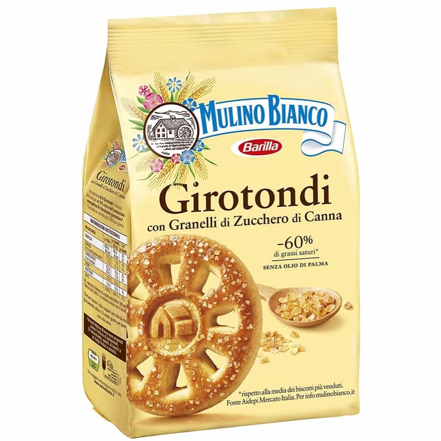 Die Girotondi Kekse von Mulino Bianco sind dank Getreidezucker sehr leicht und knusprig. Girotondi-Kekse eignen sich perfekt zum Frühstück oder zur Kaffeepause.