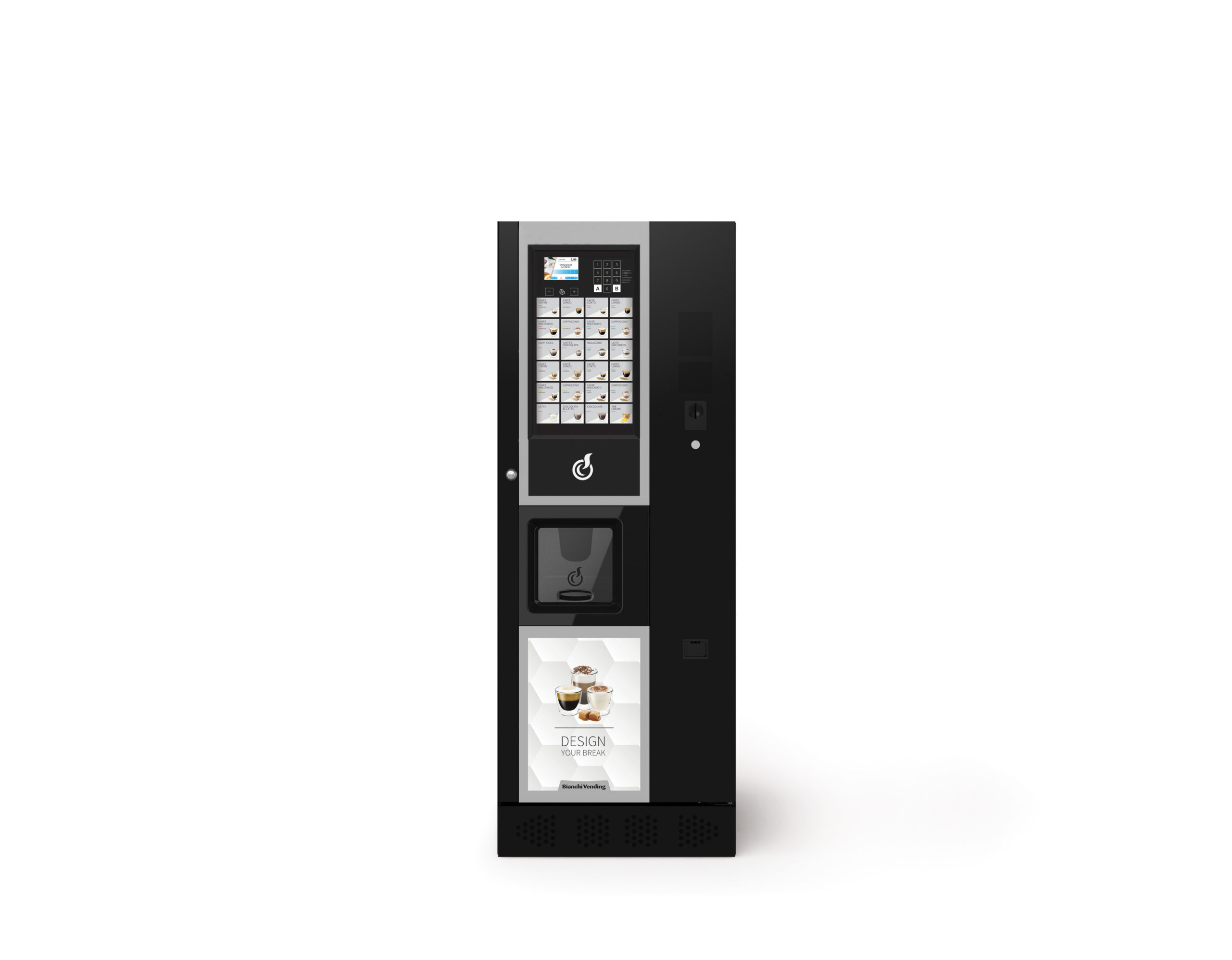 LEI400, Heißgetränkeautomat mit einer Kapazität von 400 Bechern und mit 24 Direktwahltasten (Version Easy und Smart). Zur leichten Austauschbarkeit der Benutzertasten und zur Anpassung an unterschiedliche Einsatzorte