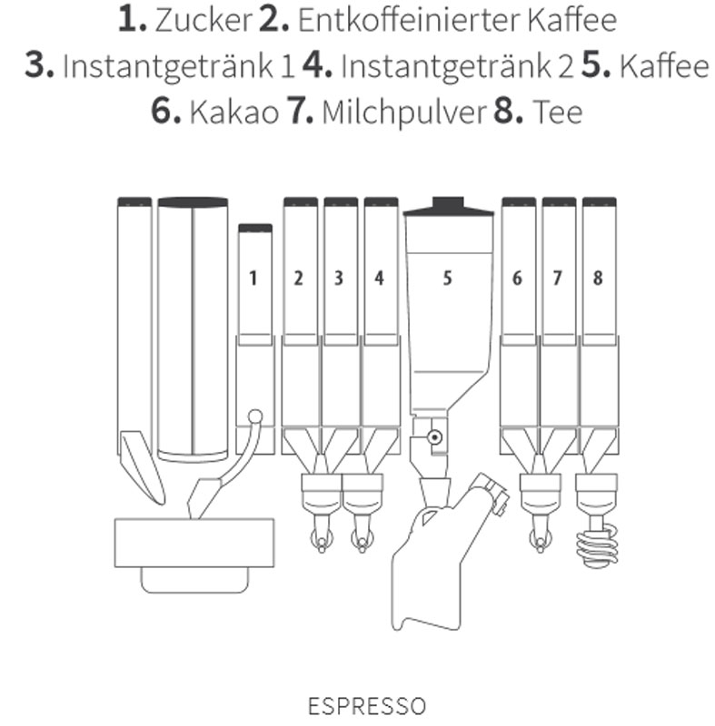 • Behälteraufnahme an der Türe für das Auffüllen der Instantprodukte