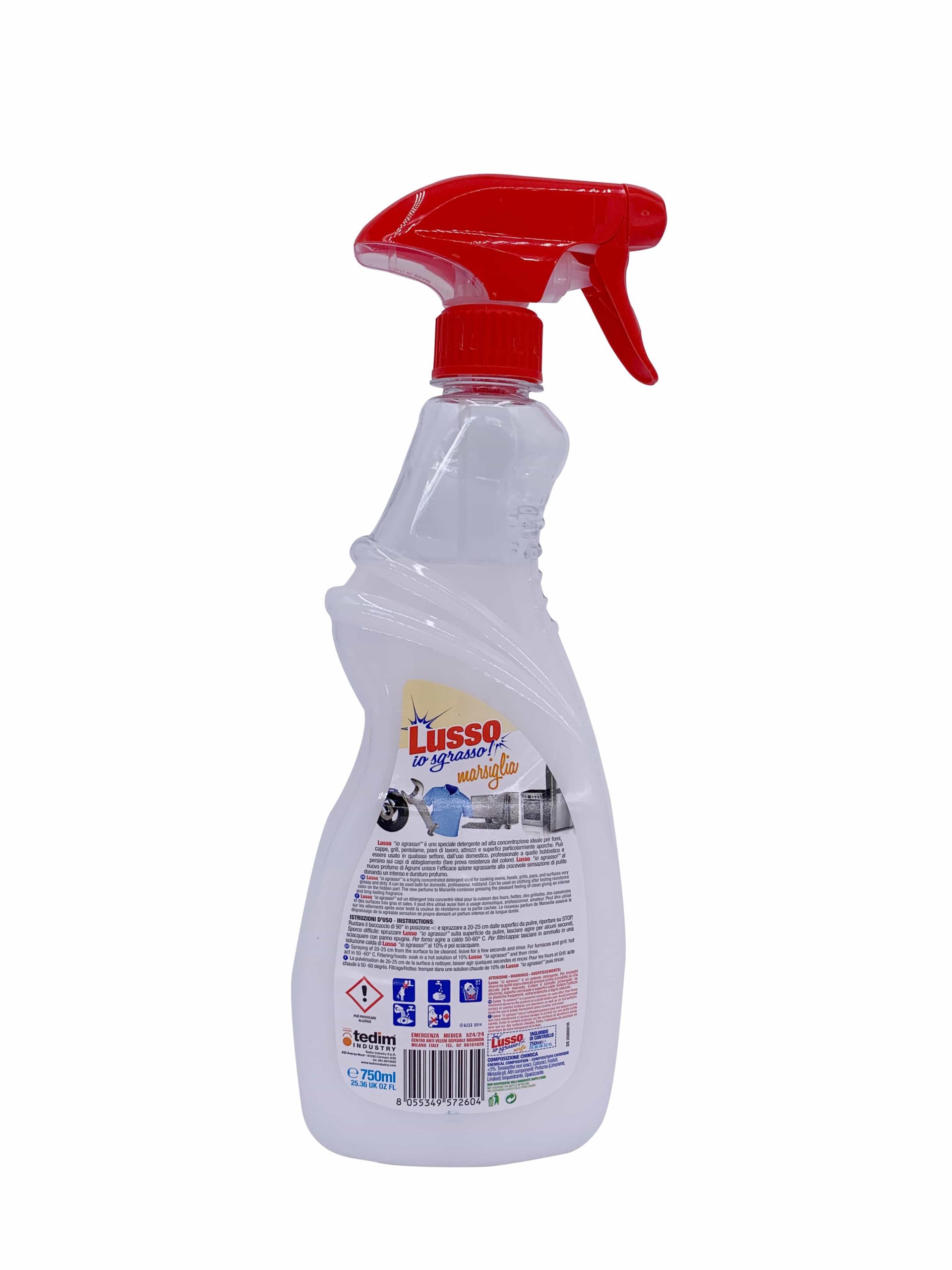Lusso Io Sgrasso! ist ein spezielles Reinigungsmittel, das sich ideal für Küchenöfen, Grills, Töpfe, Arbeitsplatten und für sehr fettige und dreckige Oberflächen eignet. Mit dem neuen Zitrusduft kombiniert das Spray die effektive entfettende Wirkung mit dem angenehmen Gefühl von Sauberkeit und sorgt für einen intensiven und lang anhaltenden Duft.