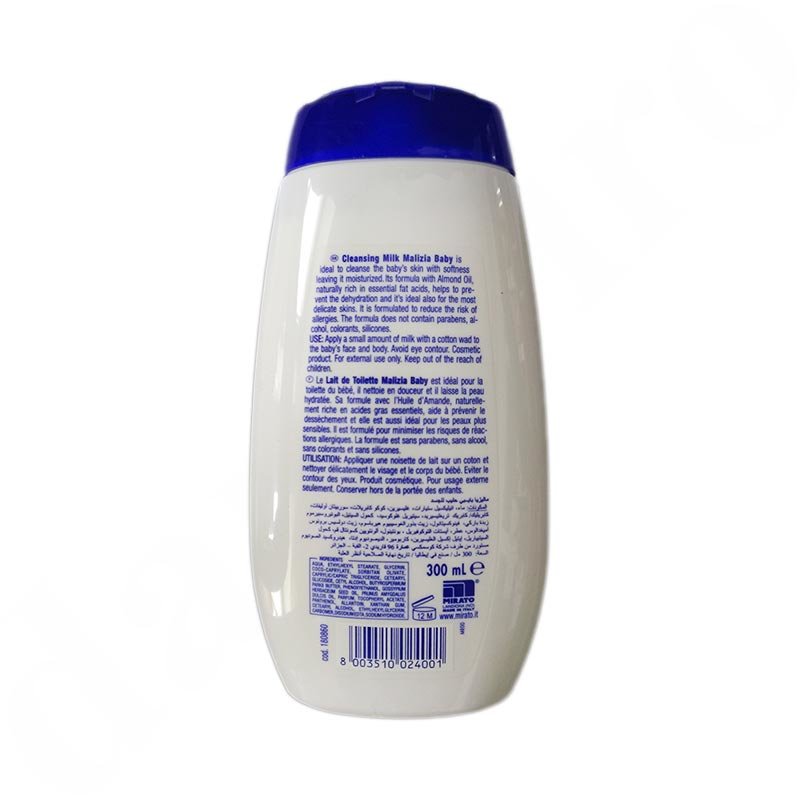 Malizia Baby-Reinigungsmilch ist ideal, um die Babyhaut mit Weichheit zu belassen und sie mit Feuchtigkeit zu reinigen.