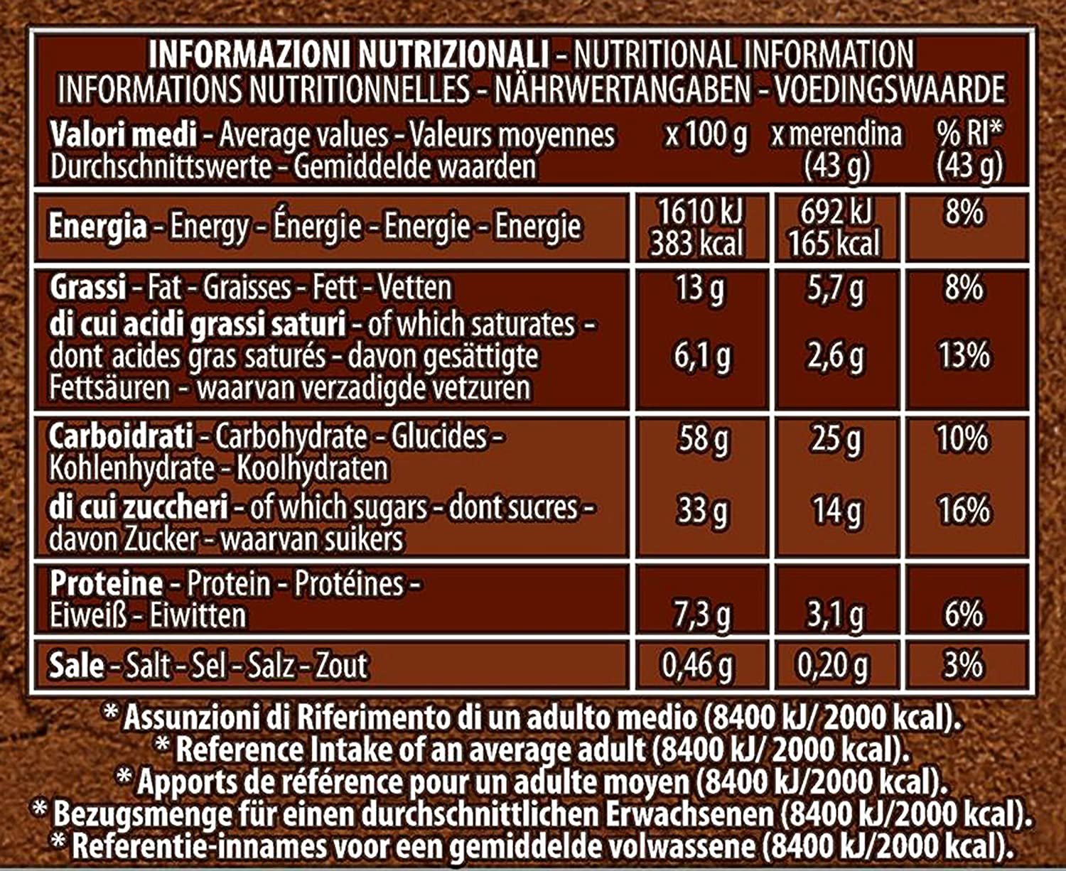 Zutaten: Weizenmehl, Zucker, Hefe, Pflanzenöle (Palm, Sonnenblume), Glukose-Fruktose-Sirup, Eigelb, Streuselzucker (3%), Dextrose, Schokolade (1,4%), Mono- und Diglyceride von Speisefettsäuren, Magermilchpulver, Sojalecithin, fettarmes Kakopulver, Salz, Eiweißpulver, Haselnusspaste, Aromen, Pektin
