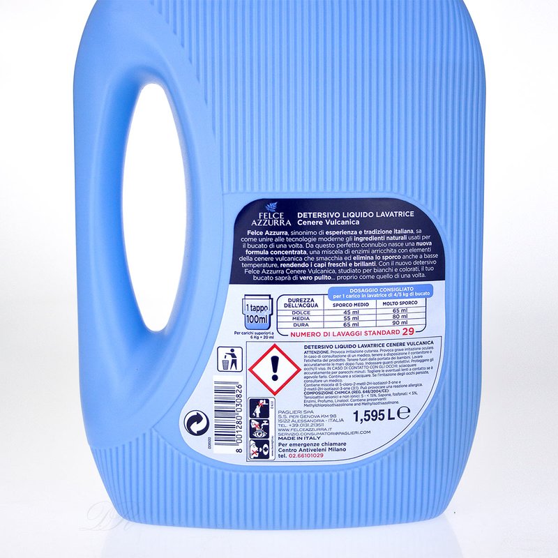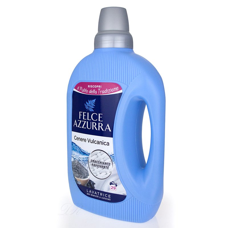 Das Felce Azzura Il Bianco Waschmittel mit Vulkanasche reicht für 29 Waschgänge, es schützt die Wäsche und deren Farben.