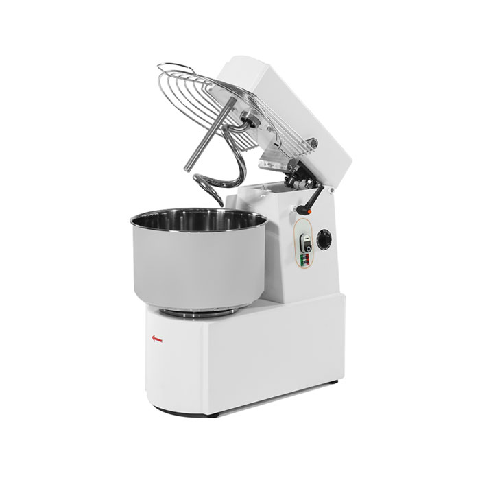DIE SPIRALTEIGKNETMASCHINE MIT HOCHKLAPPBAREM DECKEL IST DIE IDEALE MASCHINE, UM TEIG ZU VERARBEITEN FÜR PIZZE- RIEN, KONDITOREIEN, BÄCKEREIEN UND ZU HAUSE UND ERMÖGLICHT DAS EINFACHE ENTNEHMEN DES TEIGS UND REINIGUNG DER MASCHINE.